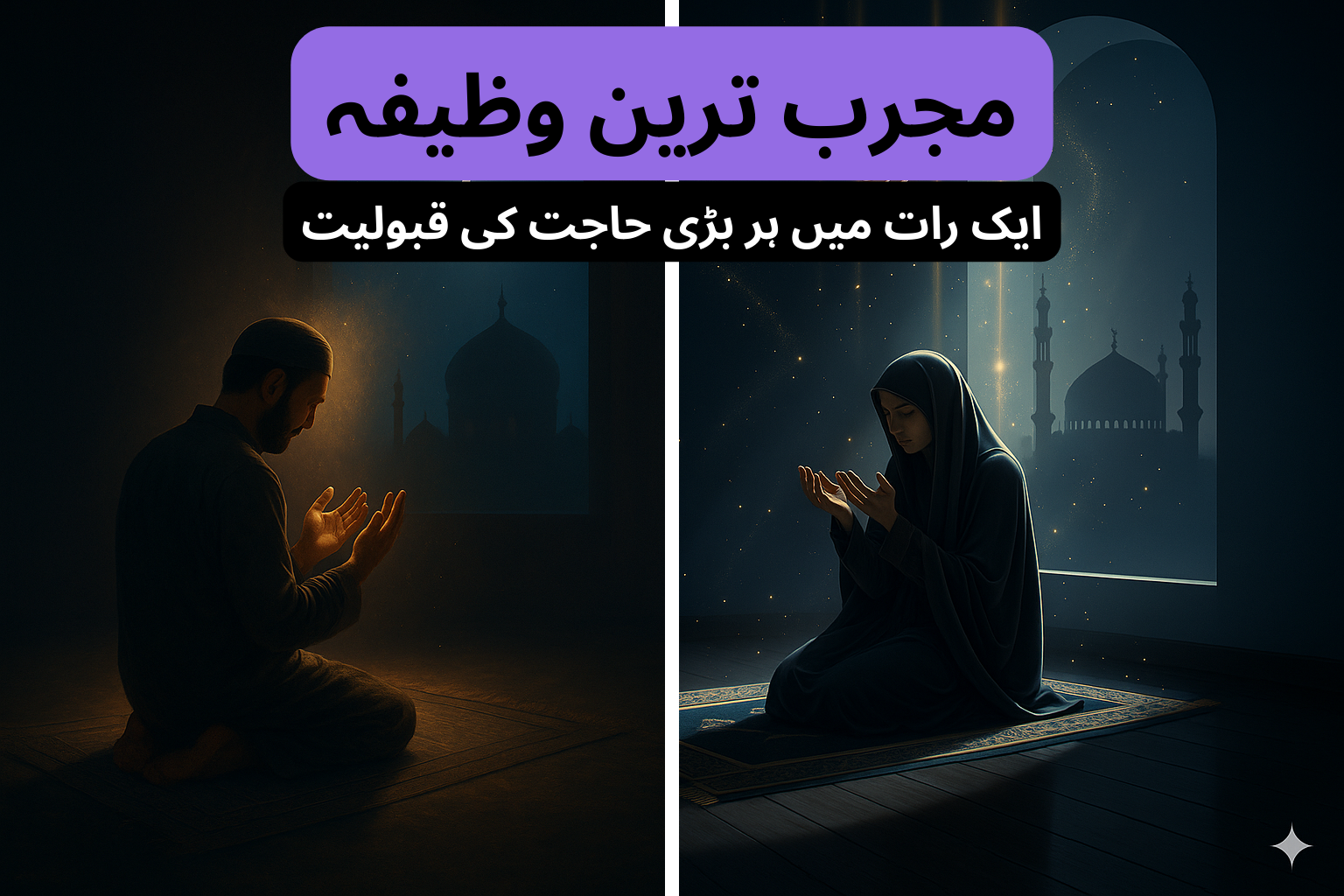 Insight • February 4, 2026 ایک رات میں ہر بڑی حاجت کی قبولیت کا مجرب ترین وظیفہ اہلِ بیتِ اطہارؑ سے منسوب روایات کی روشنی میں ایک ایسا مجرب وظیفہ جو صرف ایک رات میں ہر بڑی سے بڑی حاجت کی قبولیت کا ذریعہ بنتا ہے۔ اس وظیفے میں غسلِ حاجت، دو رکعت نمازِ حاجت اور سورۃ الاخلاص کی خاص تعداد کے ساتھ خالص نیت اور گریہ و زاری شامل ہے۔ Syed